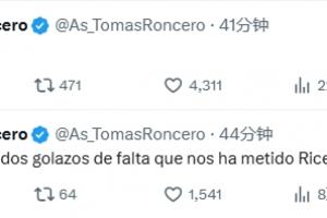 体育资讯04月09日讯 欧冠1/4决赛首回合,赖斯任意球梅开二度,皇马客场0-3惨败。 赖斯任意球双响时,龙赛罗发文:“赖斯在对阵我们时踢进两个令人难以置信的精彩任意球。太糟糕了。” “去xx的。” 赛后,龙赛罗长时间埋头,痛苦捂脸。